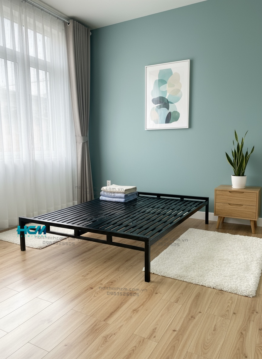 ✔ Kết cấu chắc chắn – an toàn: Khung giường làm từ sắt hộp vuông 4×4 dày 1.2mm, mang lại sự vững chãi, chịu lực tốt, sử dụng lâu dài không lo hư hỏng.