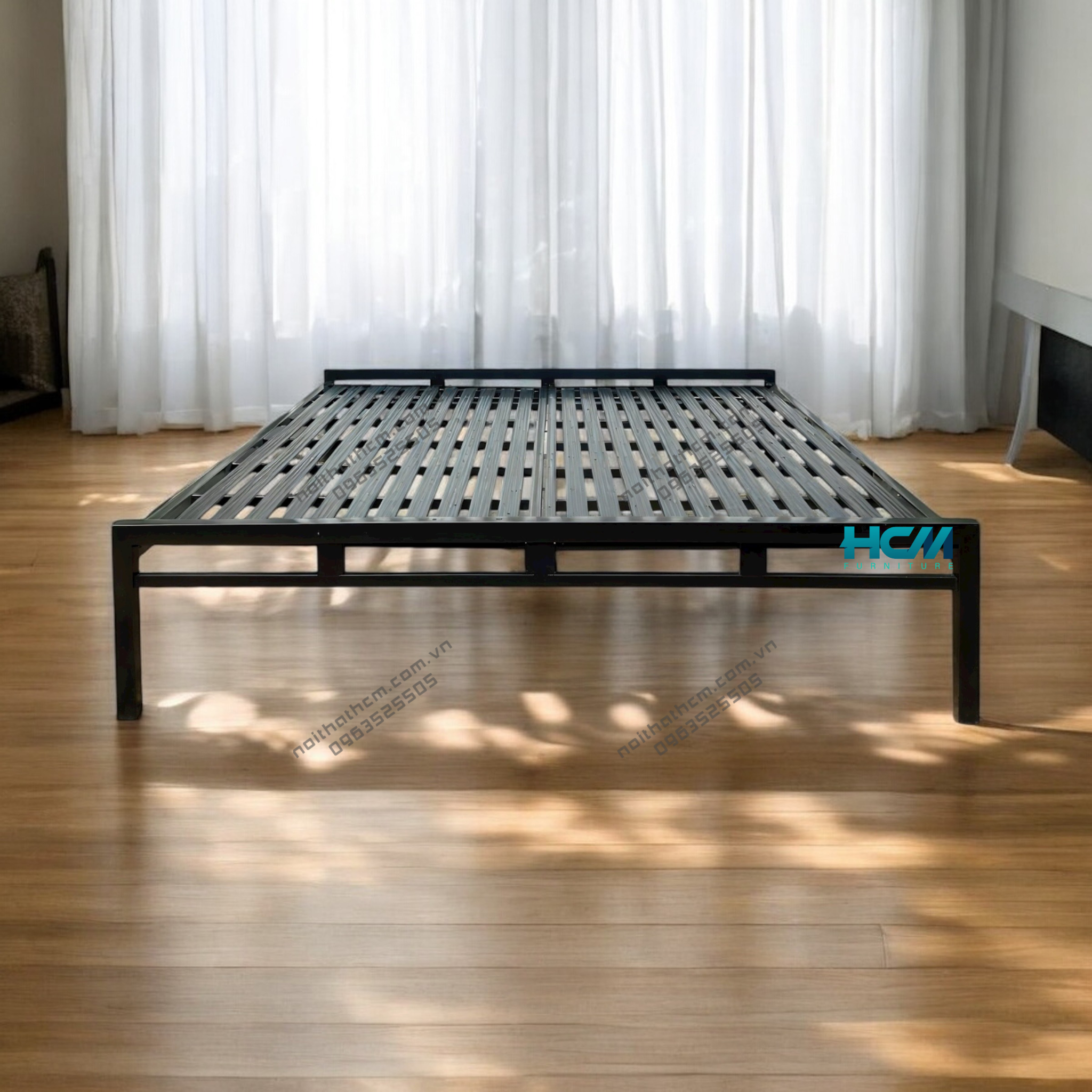Sản phẩm được làm từ khung sắt hộp vuông 4×4 dày 1.2mm, kết cấu kiên cố, chịu lực tốt, kết hợp cùng lớp sơn tĩnh điện cao cấp giúp giường không bị bong tróc, chống gỉ sét, bền đẹp theo thời gian. Đây là sự lựa chọn lý tưởng cho những ai muốn tìm một chiếc giường sắt bền bỉ, dễ lắp đặt và giá thành hợp lý.