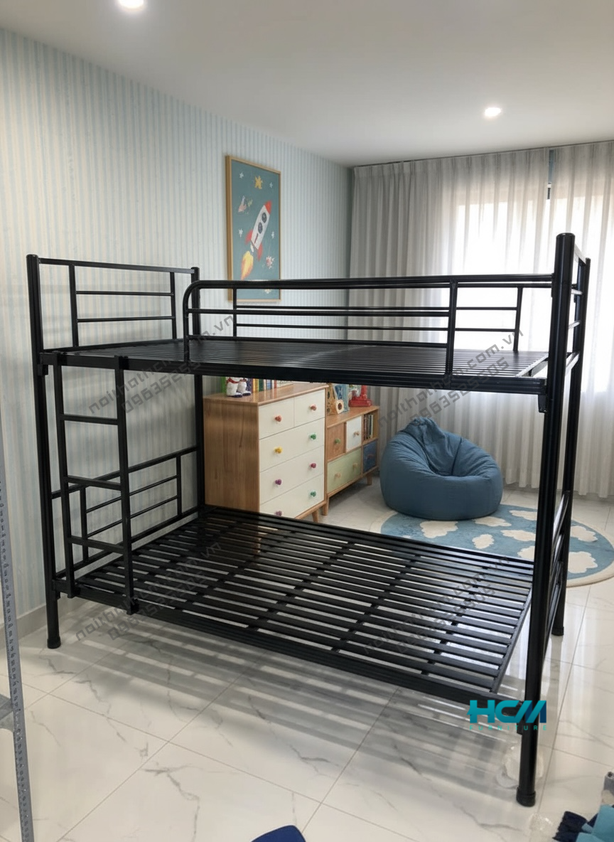 Giường sắt 2 tầng sơn đen giá rẻ đang là mặt hàng khá hot hiện nay thích hợp cho không gian phòng ngủ, nhăm tối đa khoảng trống , Giá bán giường đang rất tốt nhiều ưu đãi