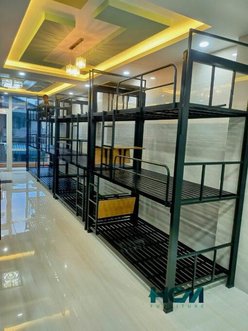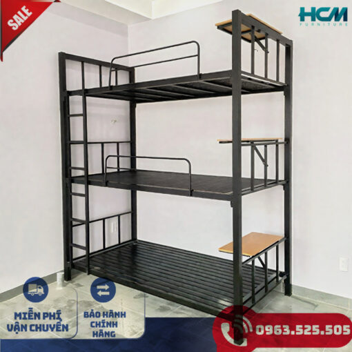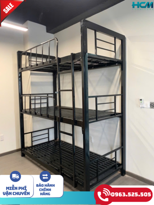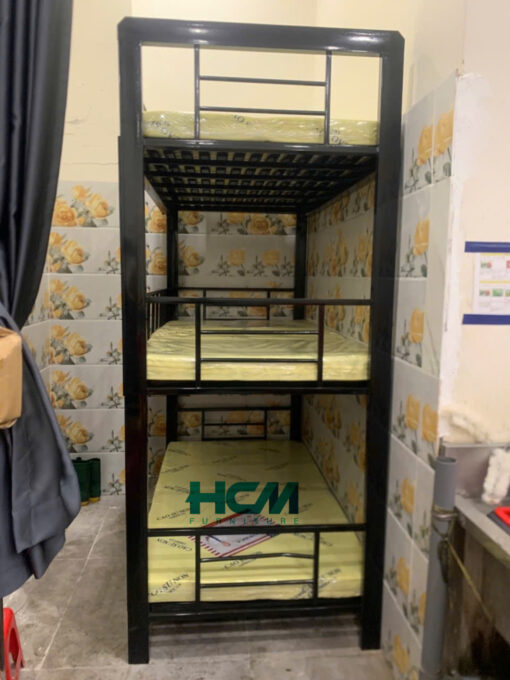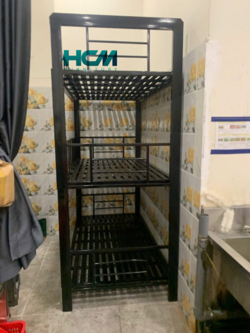 Giường sắt 3 tầng sơn đen tĩnh điện là một trong những mẫu giường sắt rất được ựa chuộng bởi đặc tính cho 3 người cùng sử dụng nhưng chỉ chiếm diện tích bằng một chiếc giường thông thường nên là sự lựa chọn hoàn hảo cho căn phòng diện tích không lớn.