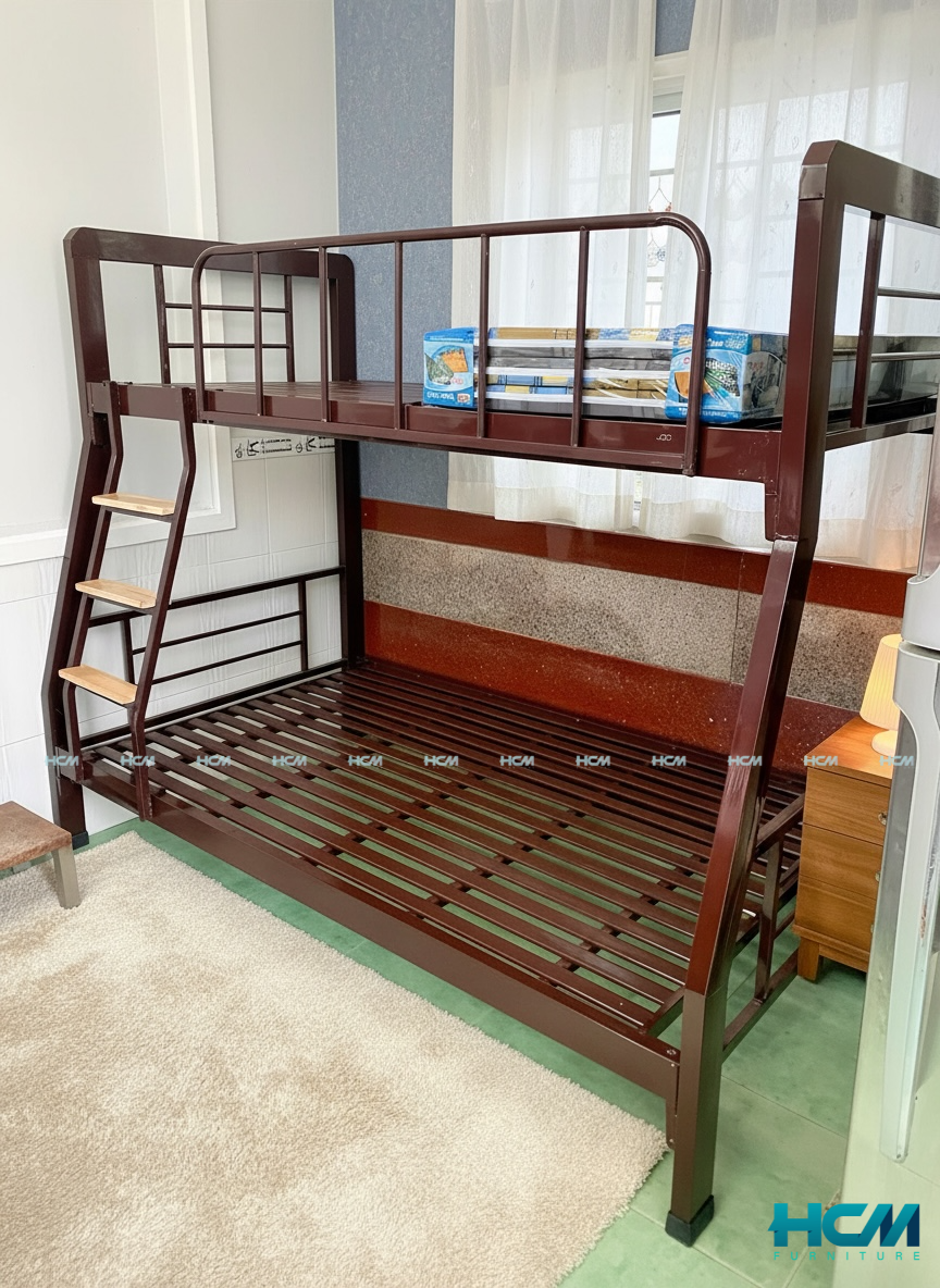 Giường sắt 2 tầng, giường tầng cầu thang kết hợp hộc tủ kiểu hiện đại, dành cho trẻ em, sinh viên,…v…..v…