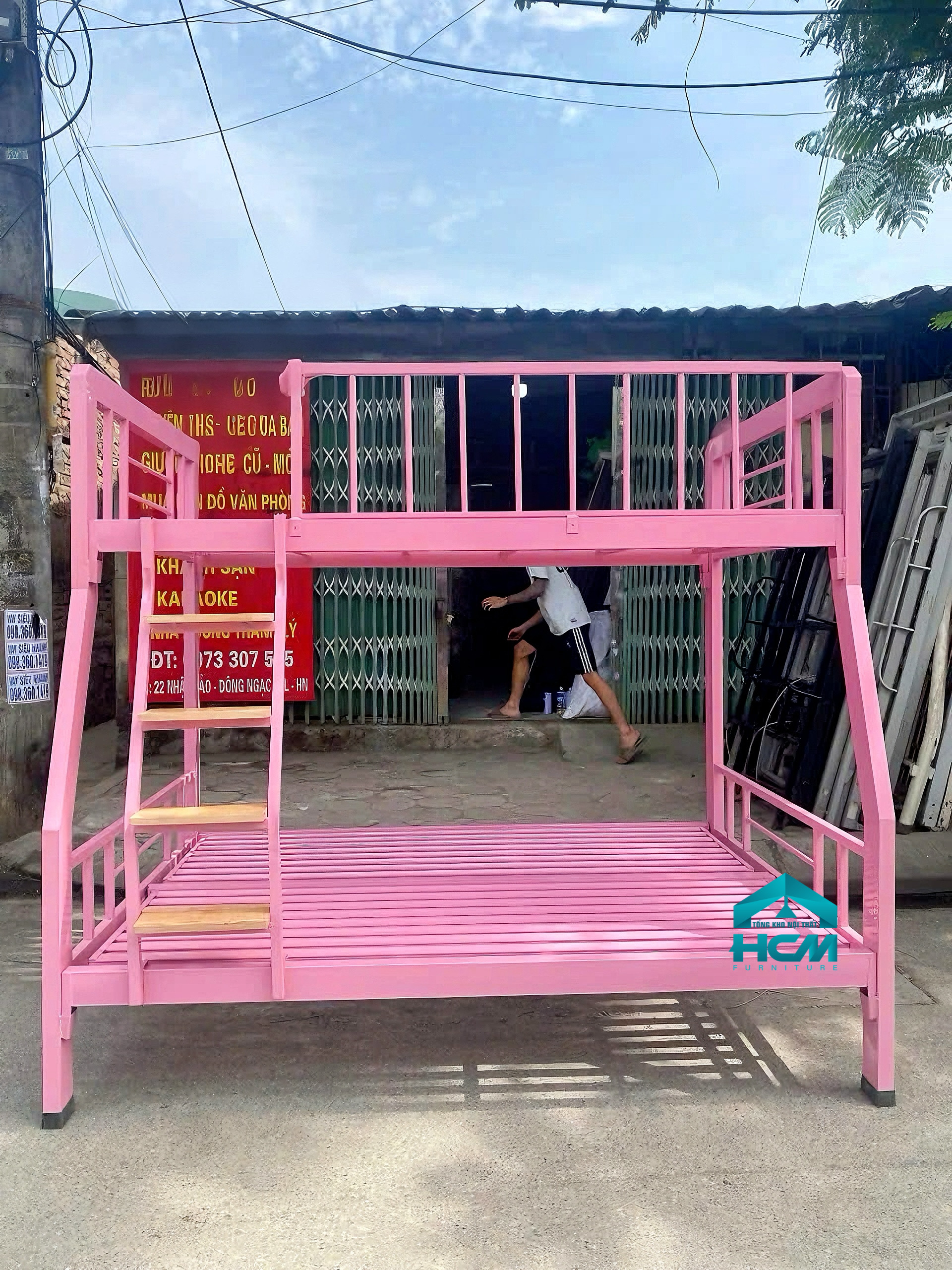 Giường sắt hai tầng hộp 48 trên 1m2 dưới 1m4 HCM