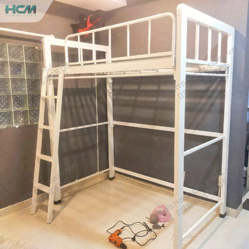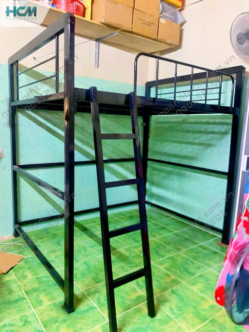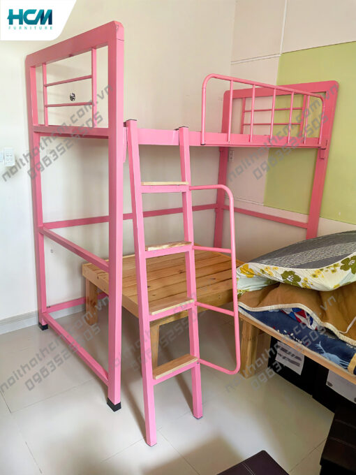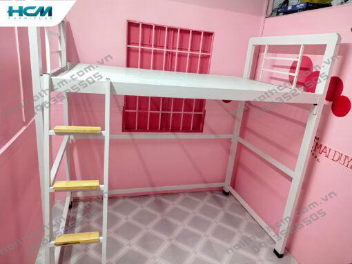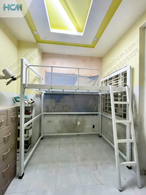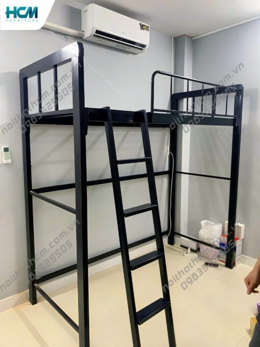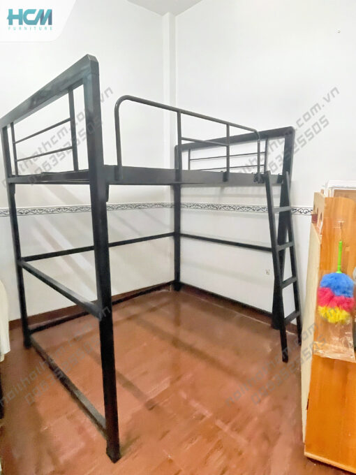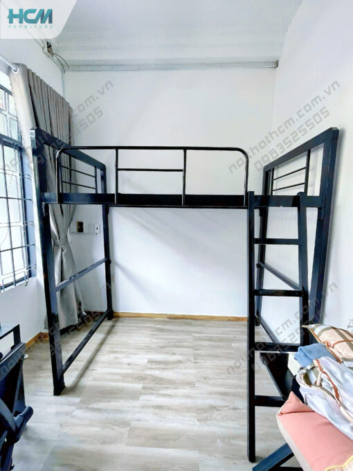 Với thiết kế thông minh, tầng trên là giường ngủ, tầng dưới là không gian trống có thể tận dụng làm bàn học, khu vực làm việc, hoặc đặt tủ quần áo. Rất phù hợp cho phòng trọ nhỏ, homestay, hay căn hộ mini.