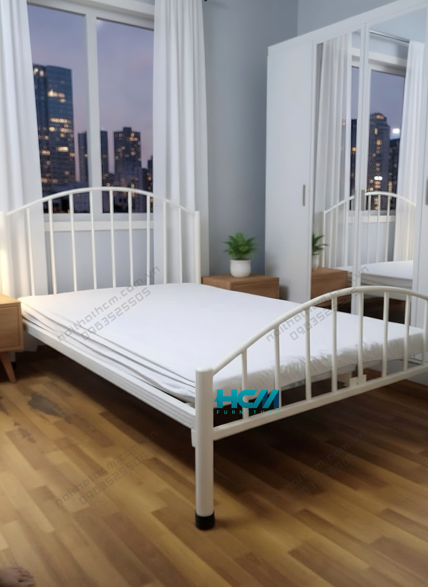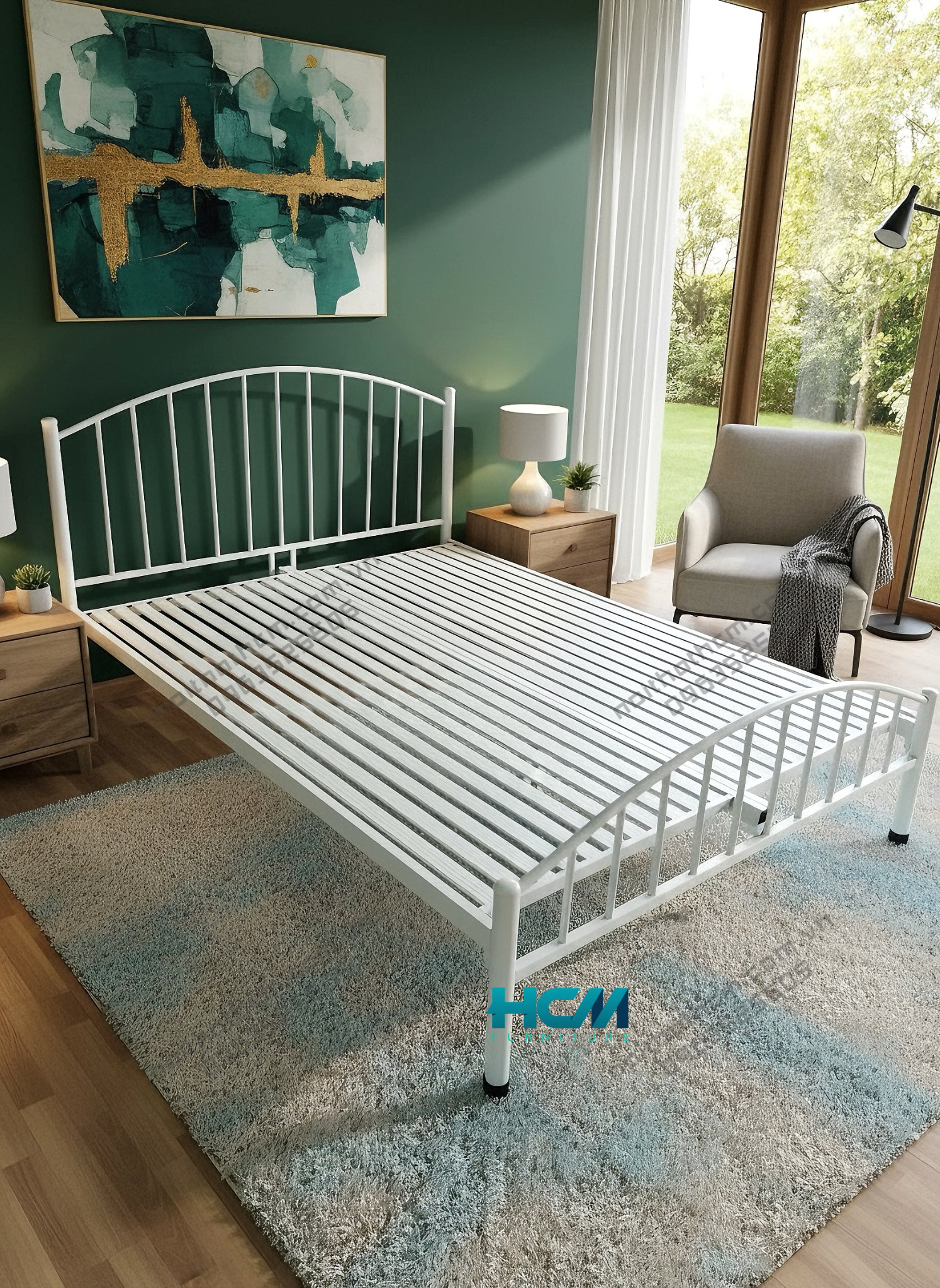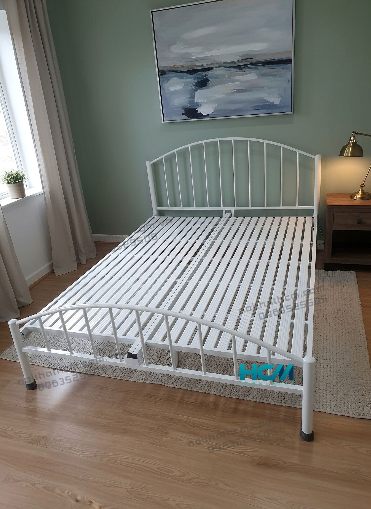 Giường sắt nghệ thuật – thiết kế tinh tế, khung sắt chắc chắn, kiểu dáng uốn lượn mềm mại mang đến vẻ đẹp sang trọng và lãng mạn cho không gian phòng ngủ.