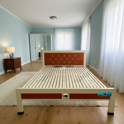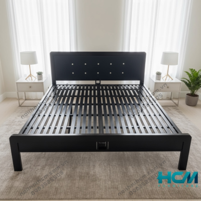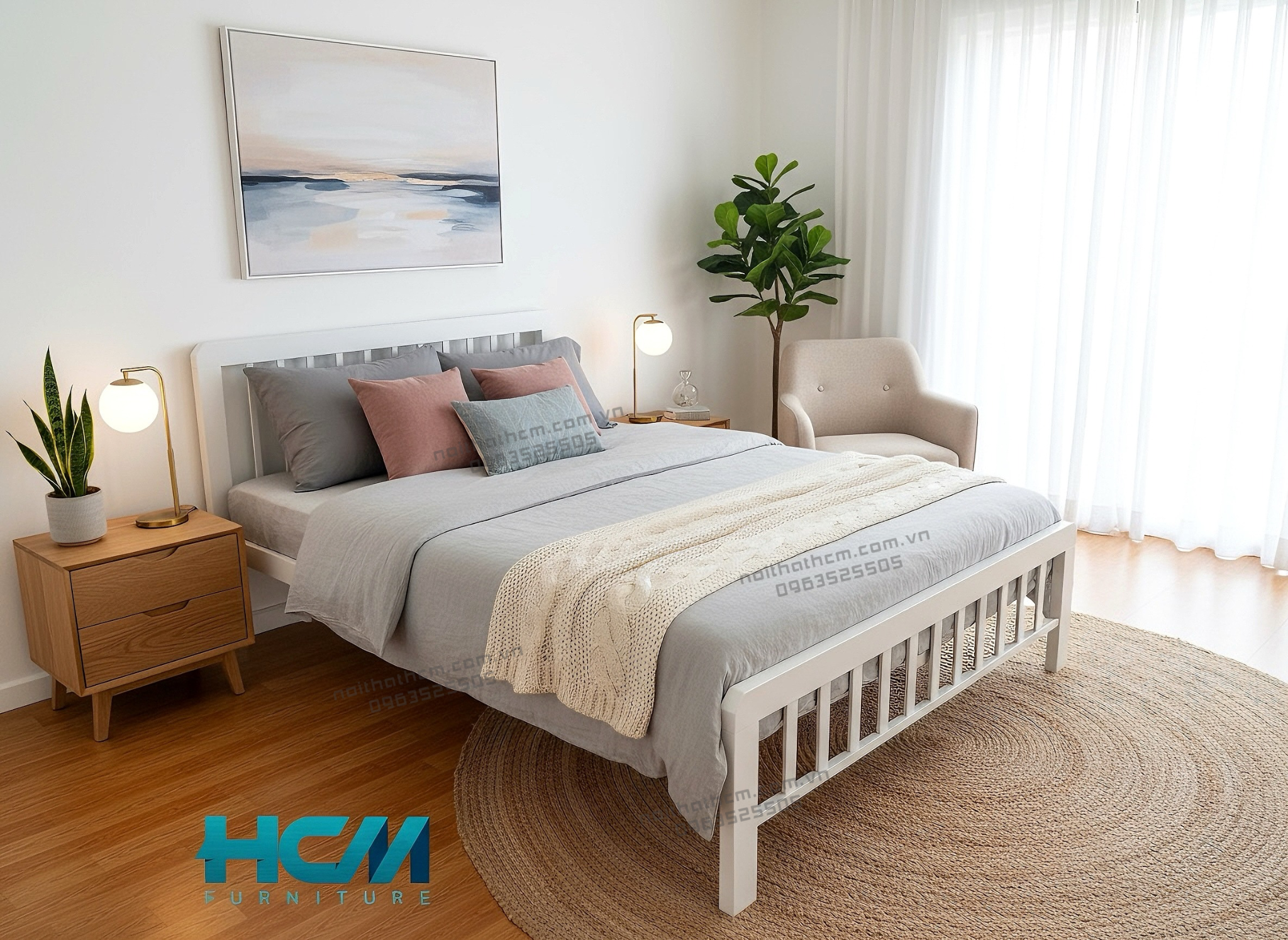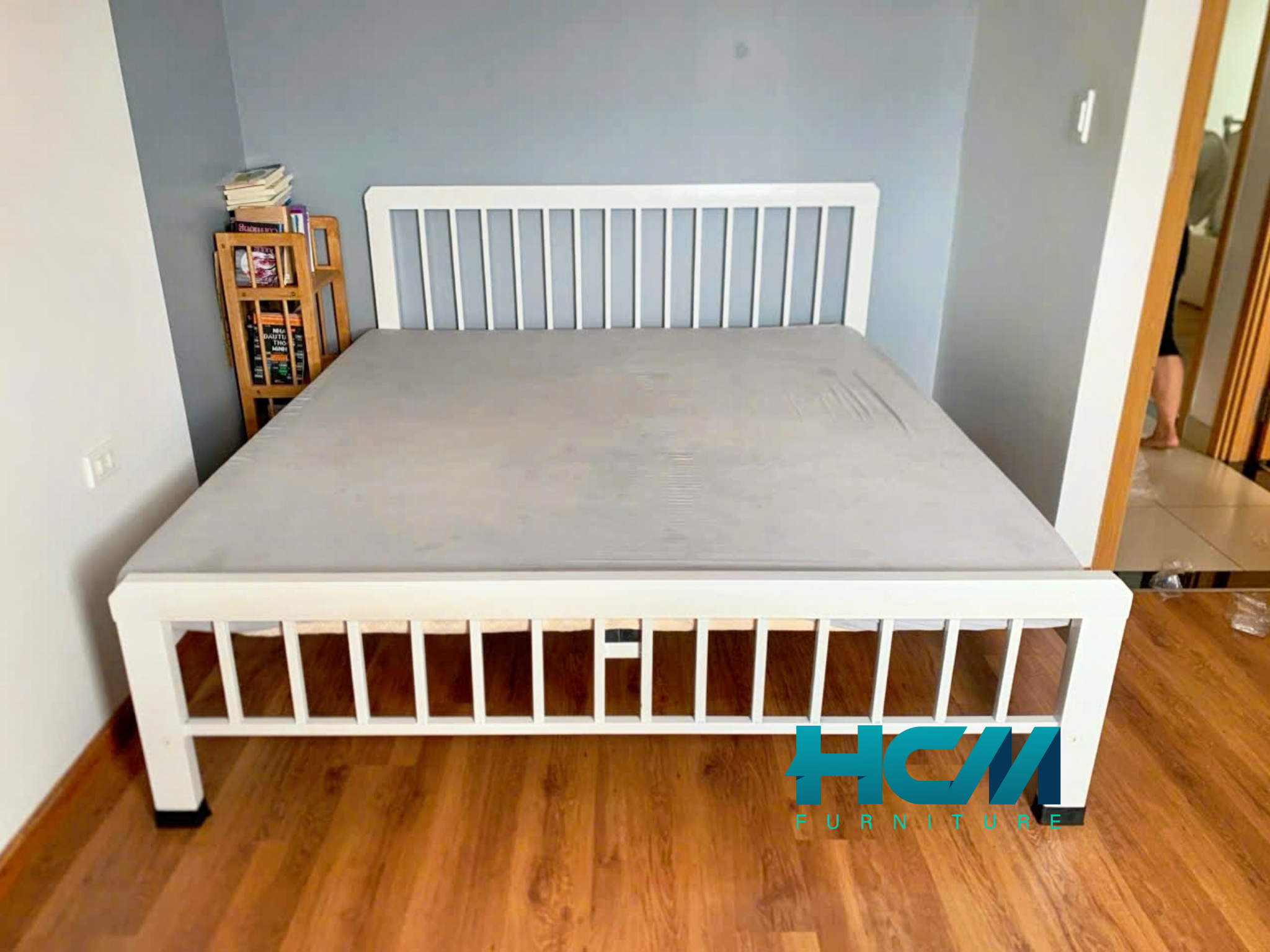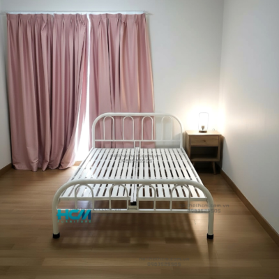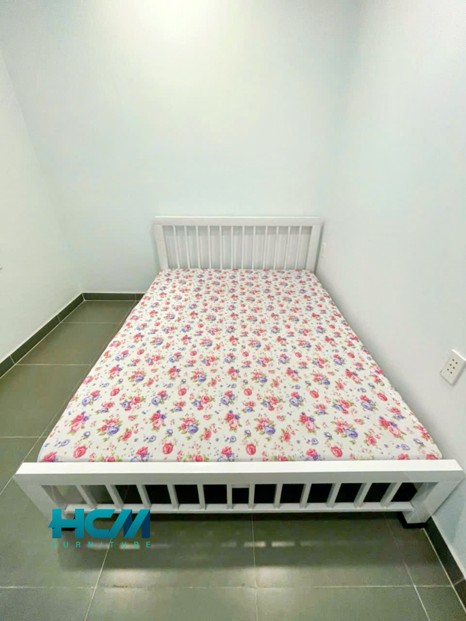 Khung giường được sản xuất từ sắt hộp dày 1.4mm, cứng cáp và chịu lực tốt, giúp giường không bị rung lắc hay cong vênh trong quá trình sử dụng. Toàn bộ khung được phủ sơn tĩnh điện cao cấp, mang lại khả năng chống gỉ sét, chống trầy xước và chống bong tróc tối ưu. Màu trắng thanh lịch phù hợp với mọi phong cách nội thất – từ hiện đại, tối giản đến cổ điển hay tân cổ điển.