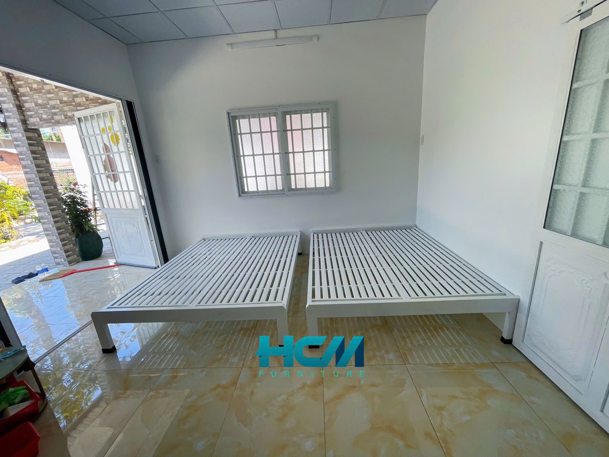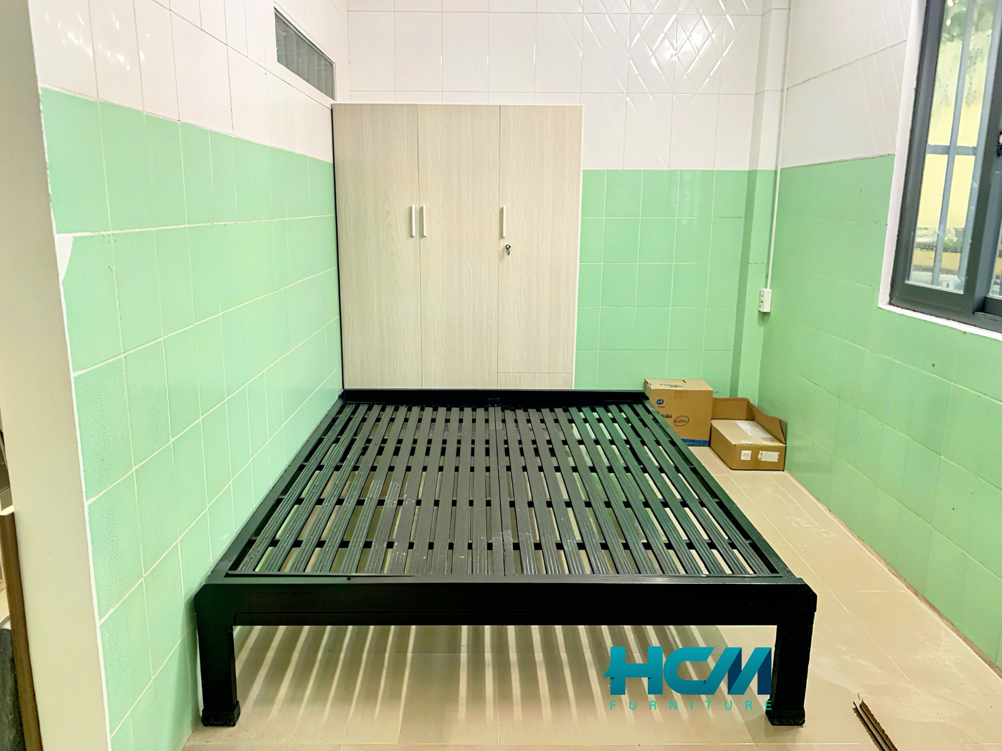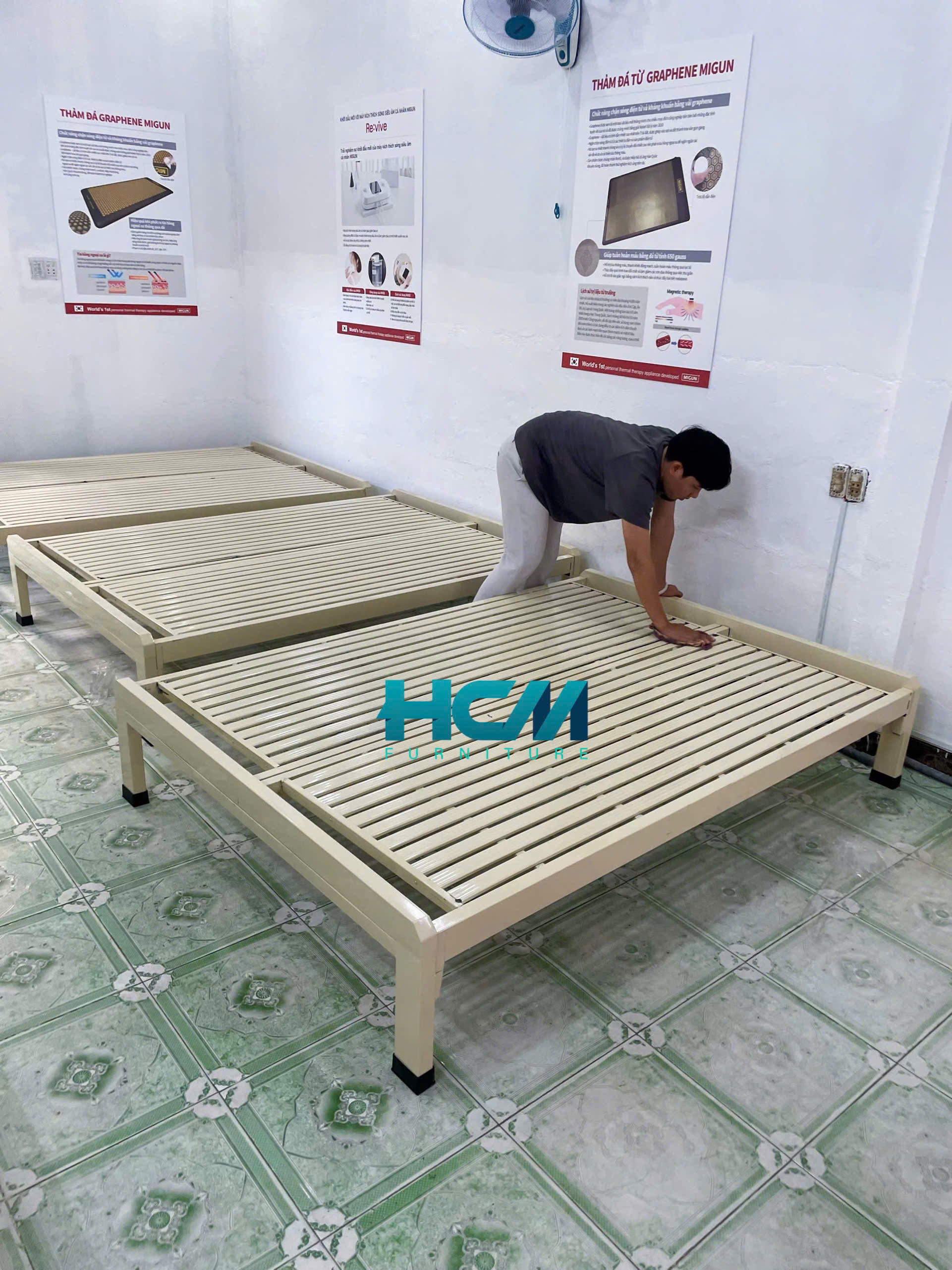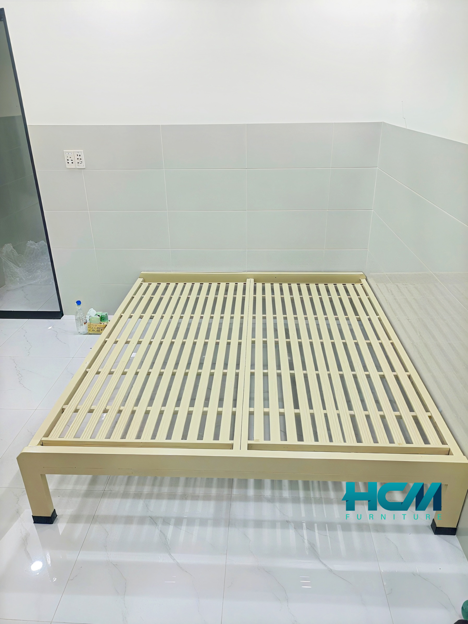 ✅ Khung giường chắc chắn, an toàn: sắt hộp dày 1.4mm, chịu tải tốt, dùng bền nhiều năm.