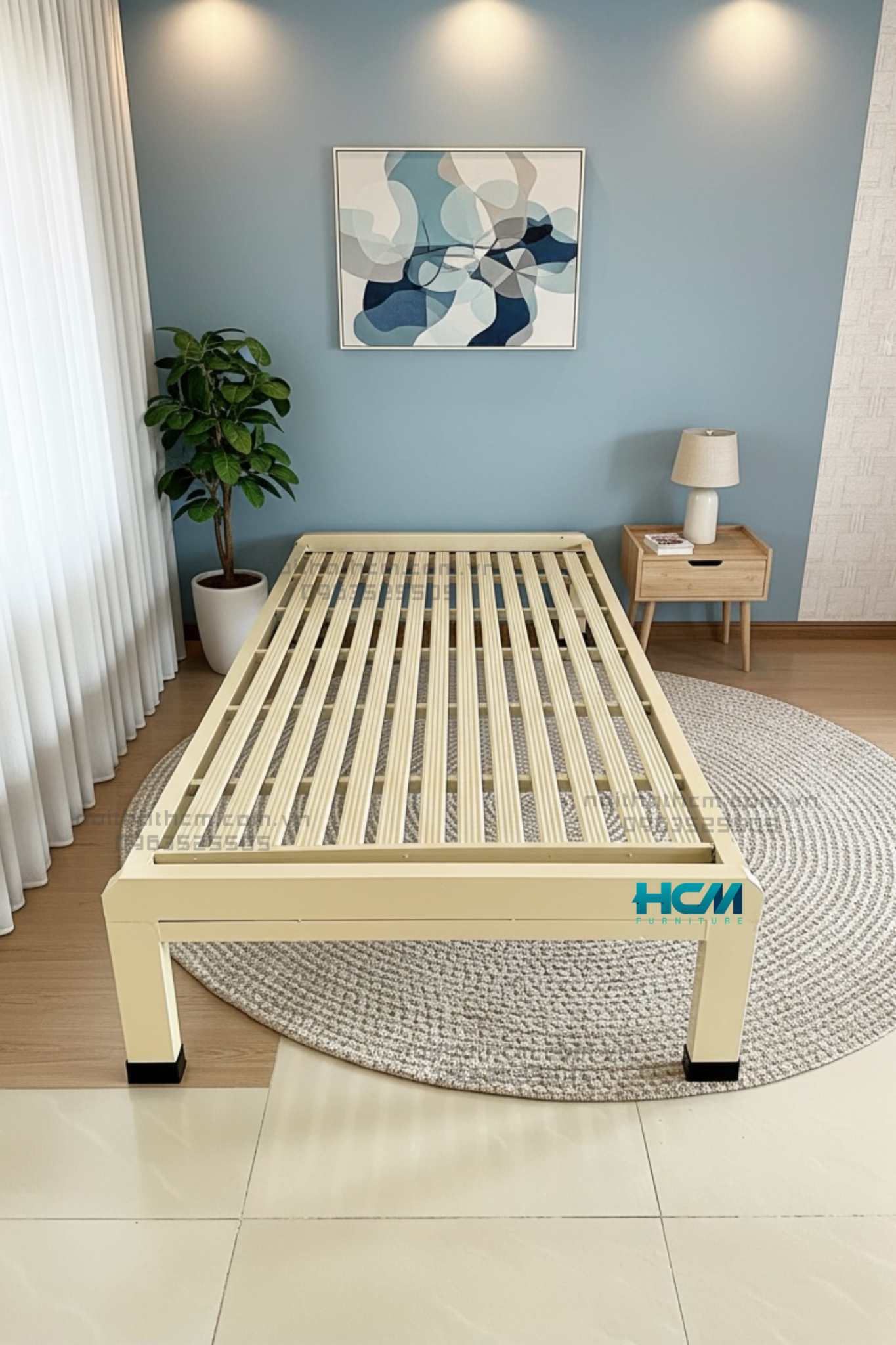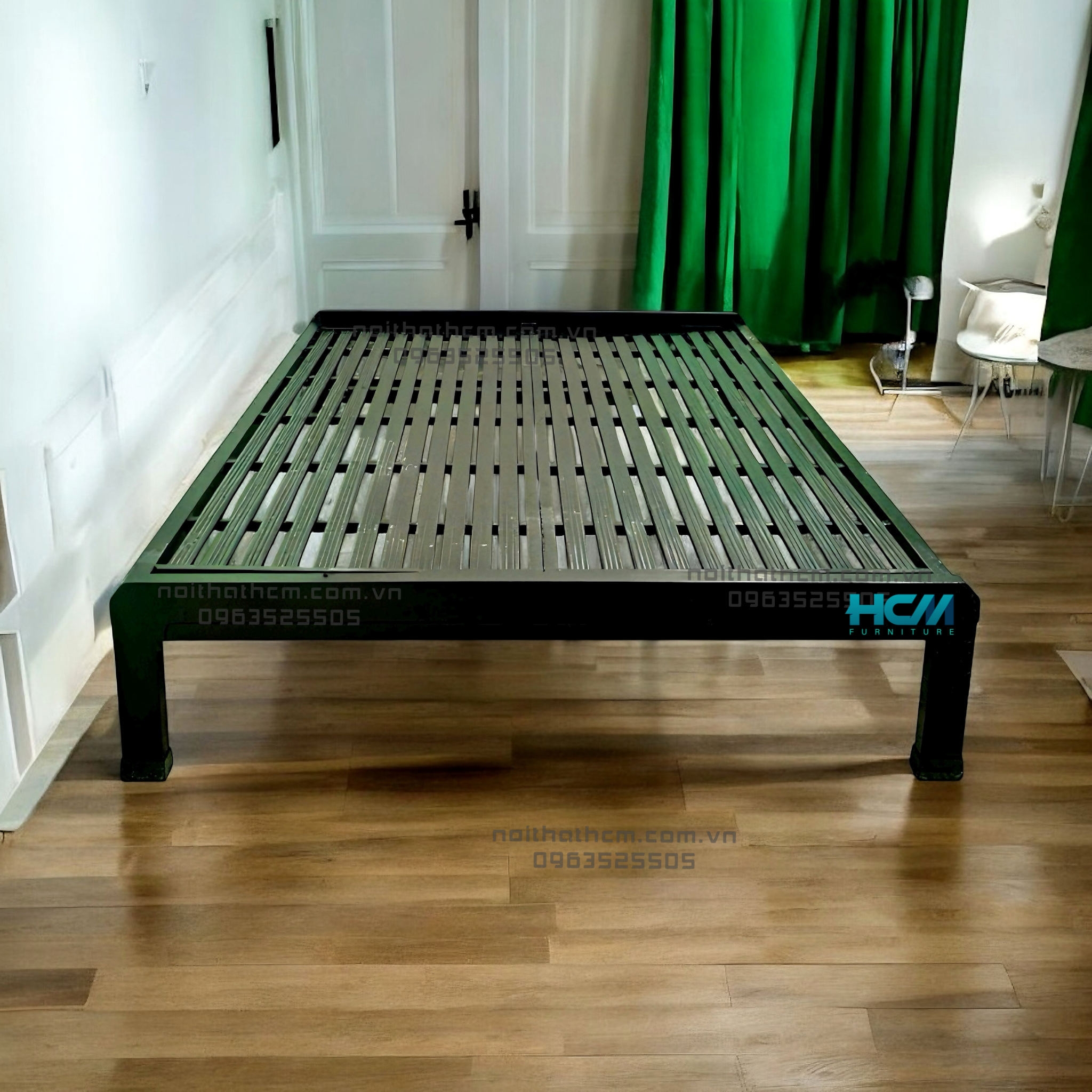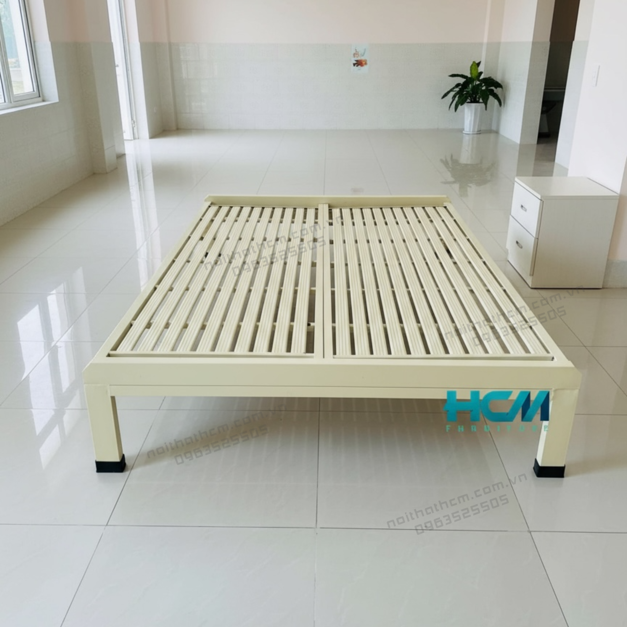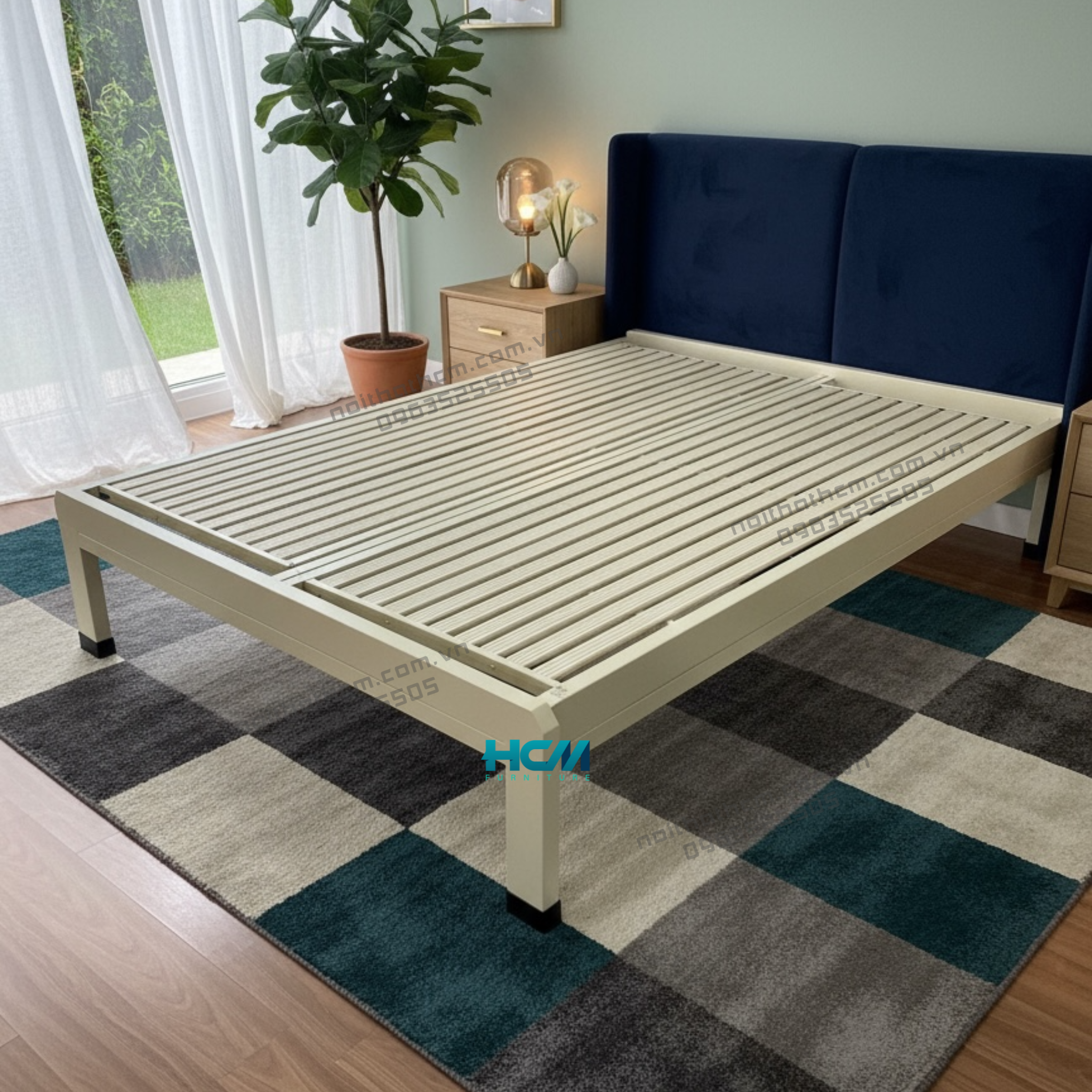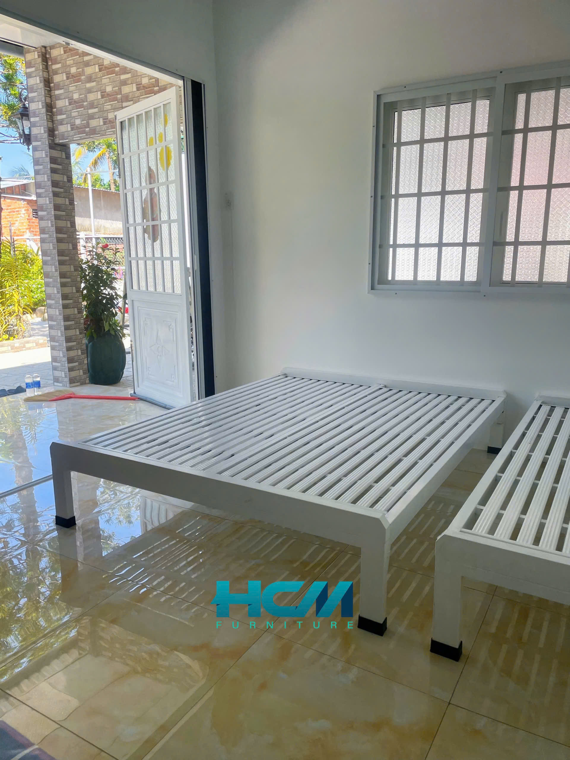✅ Khung giường chắc chắn, an toàn: sắt hộp dày 1.4mm, chịu tải tốt, dùng bền nhiều năm.