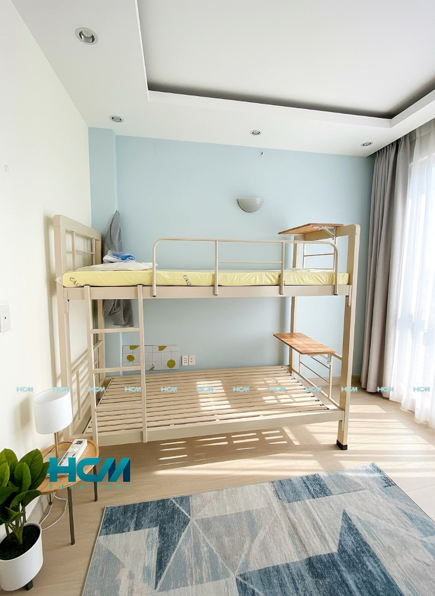 Tiện ích vượt trội: Tích hợp bàn học thông minh ngay dưới tầng, tiết kiệm tối đa diện tích phòng.
