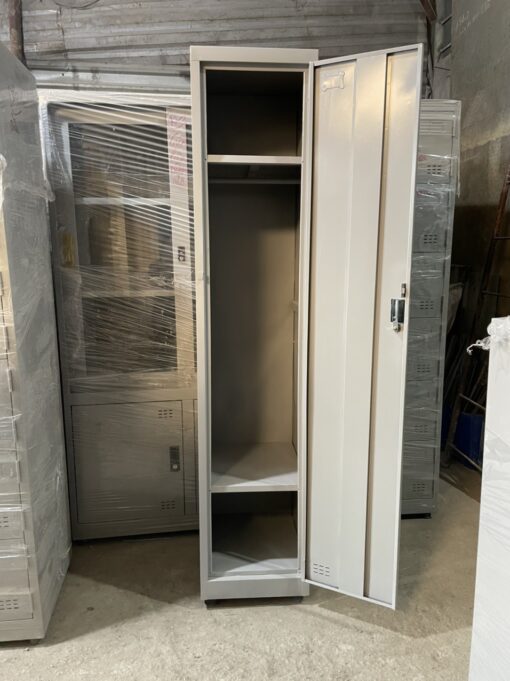 Tủ Locker 1 Ngăn là dòng tủ sắt công nghiệp được thiết kế chuyên dụng cho văn phòng, trường học, nhà máy, khu công nghiệp, phòng gym, hoặc siêu thị. Với kiểu dáng gọn gàng, màu ghi xám trung tính và chất liệu sắt sơn tĩnh điện cao cấp, sản phẩm vừa đảm bảo tính thẩm mỹ hiện đại, vừa có độ bền vượt trội theo thời gian.